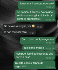 “Ciao pagina di spunte blu, vi devo mandare gli screen di una conversazione avuta con mia moglie perché onestamente non so più dove sbattere la testa.