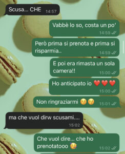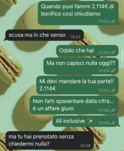 Ho i nervi a fior di pelle. Vi lascio gli screen del nostro litigio così mi dite anche voi perché io proprio boh… sono allibita completamente.”