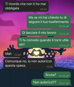 Vi lascio solo la nostra chat e vi chiedo di leggere tutto per capire bene.