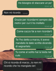 Vi lascio qui sotto gli screen. Come devo fare con questo essere che non merita nemmeno di essere definito uomo???”