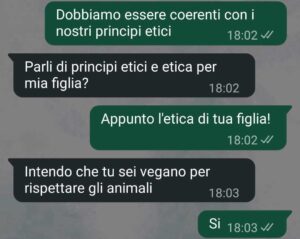 Ci sono scelte che vanno mantenute sempre, scelte di alimentazione, scelte di rispetto. quello che io e mia moglie ci siamo impegnati ad avere nei confronti degli animali, degli animali tutti senza preferenze. abbiamo uno stile di vita vegano.