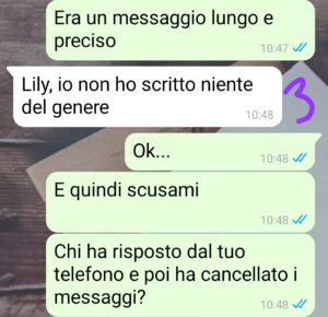 “Ti è mai capitato di leggere un messaggio e pensare “ok, questa non è la persona con cui sto parlando”? A me sì, proprio ieri. Io e Angelo dovevamo vederci stamattina, un caffè veloce prima che ripartissi. Niente di impegnativo. Però negli ultimi giorni lui rispondeva strano: frasi fredde, mezze parole, e non si ricordava cose che gli avevo scritto due giorni prima. Tipo quando gli avevo chiesto come andava con la sua ragazza: mi aveva scritto “Va tutto benissimo”. Oggi invece mi dice che litigavano e che era un macello. E lì mi è scattata una cosa brutta… il dubbio che non fosse lui a rispondermi. Che qualcuno leggesse, cancellasse e rispondesse al posto suo. E allora mi sono detta: ok, prima di partire io la verità su tutto la voglio. E voi, al mio posto, che avreste fatto?”