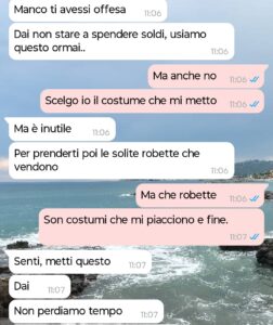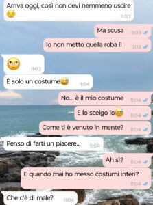 “Ciao a tutti, mi chiamo Lidia e fino a poco tempo fa ero contenta di partire finalmente per il mare con Riccardo, il mio ragazzo (forse). Ditemi voi se nel 2025 è normale che esistano ancora discussioni di questo tipo. Sono una ragazza abbastanza in forma, passo l’anno a tenermi in allenamento sia per me che per il mio ragazzo; avendo anche avuto problemi di peso in passato sono felice di avere finalmente un corpo che mi piace. Non è mai stato un problema, più o meno in verità, fino al giorno prima della partenza per il mare. Tutta contenta sono pronta come da tradizione a comprarmi un costume nuovo per l’estate maaa…ci ha già pensato il mio cavaliere! Ovvio, no? Immagino succeda a tutte. Spoiler: ne dubito. Comunque, mi propone un costume intero terribile e io in spiaggia di solito uso il bikini. Ecco che dal gesto “carino” che sosteneva di aver fatto esce fuori invece la cosa più banale di sempre: è geloso. Geloso che la gente mi veda, mi parli o che semplicemente esista. La colpa ovviamente è mia se chiacchiero con qualcuno o se cammino in mezzo alla gente. È talmente assurdo che non so nemmeno cosa dire se non che pensavo ormai queste cose non succedessero più: mi vesto come voglio IO e non devo renderne conto a nessuno! Tantomeno se in spiaggia sto in costume e non vestita da suora come immagino vorrebbe lui. Ah, inutile dire che le vacanze probabilmente me le farò da sola e vedrò di divertirmi come ho sempre fatto. Naturalmente, con il costume che voglio io.”