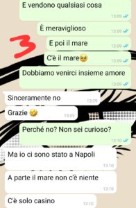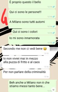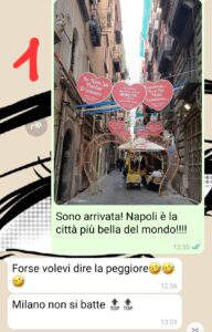 Sono partita dall’Abruzzo per fare l’università a Milano dopo che avevo frequentato dei corsi estivi al liceo e poi non sono più tornata. Ora ci lavoro stabilmente. In questi anni non ho viaggiato molto in Italia, ho fatto giusto qualche weekend all’estero e sono tornata dai miei per le vacanze estive. Insomma …non ci crederete ma io non avevo mai visto Napoli!! In questi giorni, per una questione di lavoro, mi hanno mandato 3 giorni in trasferta proprio a Napoli, e ragazzi, è stato amore a prima vista!! E’ bastato davvero poco per capire quanto è speciale questa città. Solo che quando ne ho parlato a Michele…lui ha reagito in modo strano…E questa cosa mi ha colpito. Siamo proprio diversi…forse troppo?”
