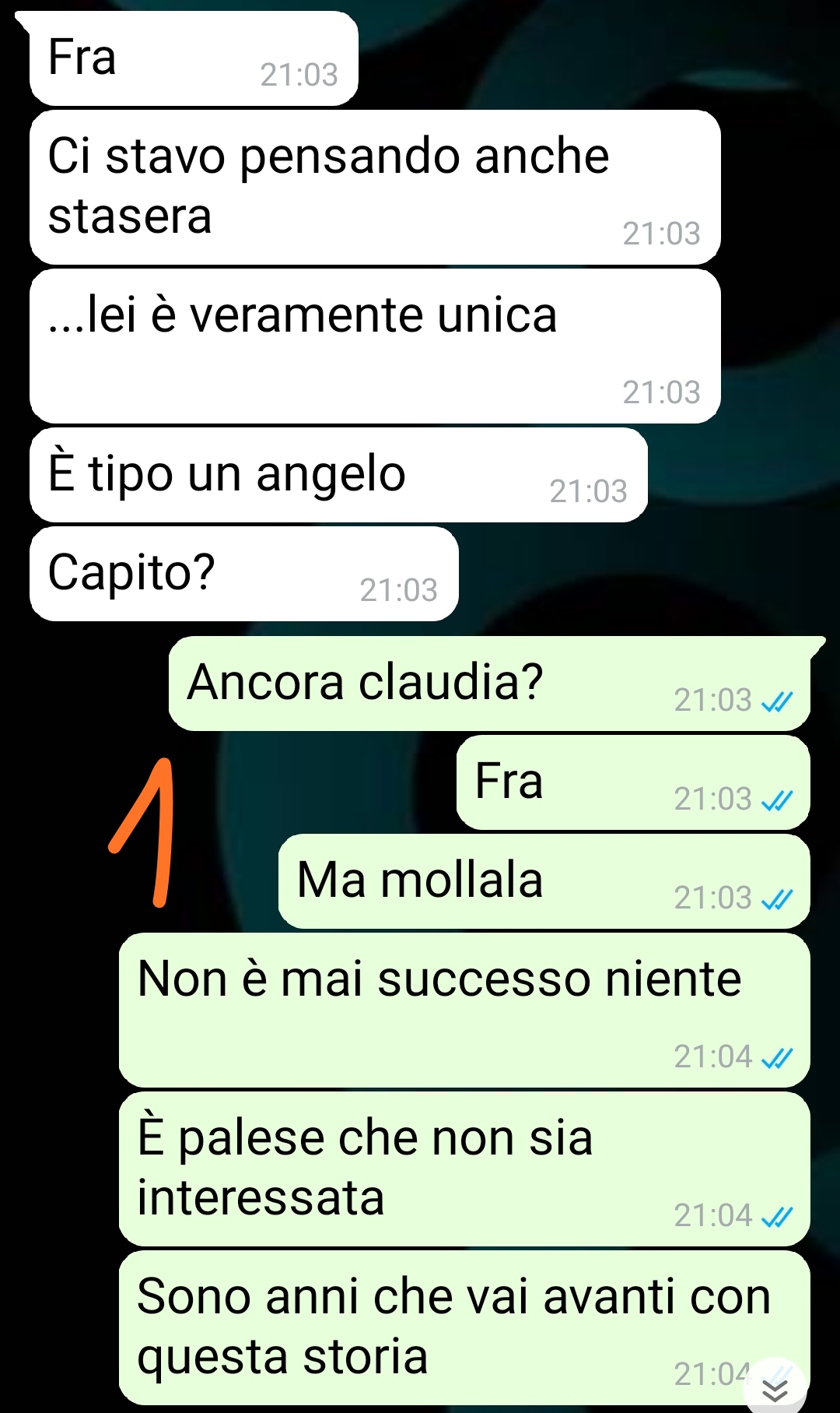 “Mi chiamo Luca e ho un amico, Simone, che definire “testardo” è riduttivo. È fissato con questa ragazza dai tempi del liceo. Il problema? Lei a malapena sa che esiste. Da allora, ogni conversazione con lui finisce sempre lì: “ha pubblicato una storia”, “era al bar”, “respira”. Per carità, mi dispiace per lui, ma sono anni che vive in questo limbo di fantasie e paranoie. Ho cercato di fargli aprire gli occhi, di convincerlo che ci sono milioni di ragazze là fuori, ma niente, è come parlare con un muro. Peggio ancora, con uno che spera che il muro gli risponda.