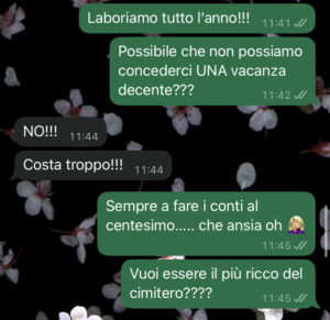 Vi lascio qui gli screenshotti, così magari mi dite se sto esagerando io o se davvero chiedere un po’ di vita ogni tanto è diventato un crimine! Ma anche i vostri mariti e fidanzati sono così?? Io ormai mi chiedo ogni giorno perché ci mettiamo con uomini del genere! HELP!!”