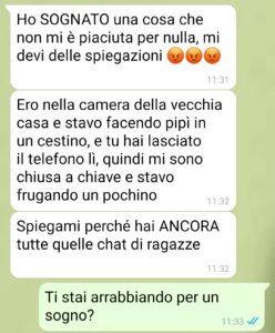 “Ciao, sono fidanzato con la mia ragazza da qualche annetto, tutto fila liscio con lei, anche se è un tantino insicura e un po’ paranoica. Questo lo dimostra il suo volere costantemente spiegazioni quando si tratta di cose futili come ad esempio un sogno che lei ha fatto. Noi uomini vogliamo solo essere lasciati in pace, senza complicarci troppo la vita, ma e’ così difficile da comprendere? Evidentemente sì. Non so più cosa fare con lei, perché questi suoi modi di fare non fanno altro che stancarmi, e se io mi stanco poi è la fine..”