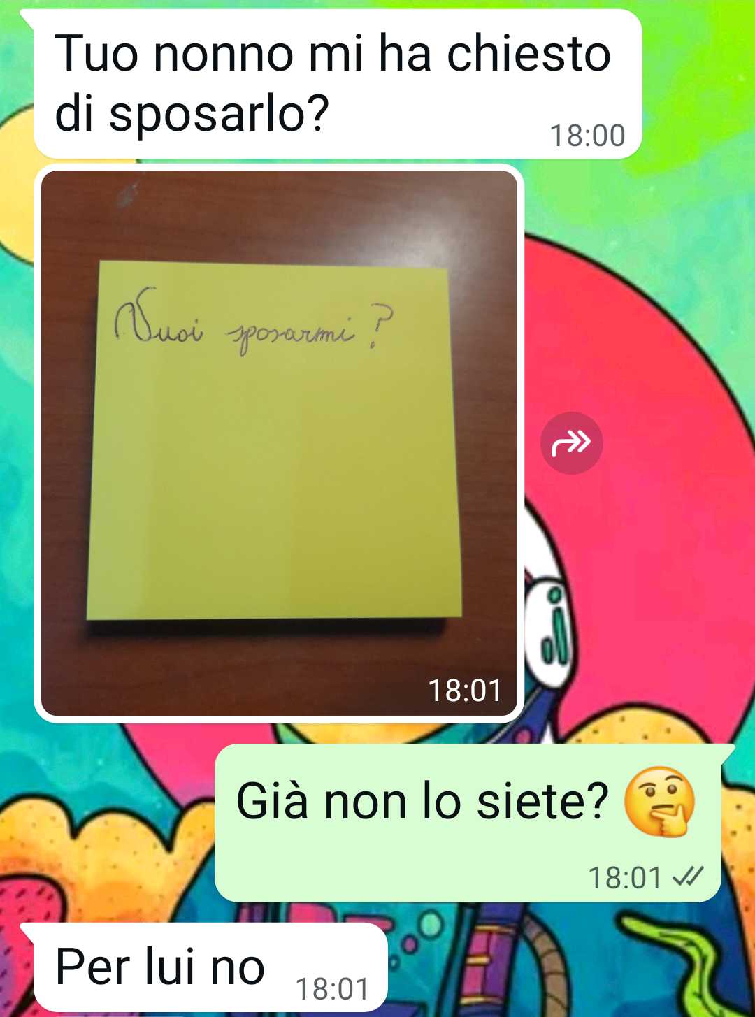 “Nonna è innamoratissima di nonno che ha però l’Alzheimer. Oggi le ha chiesto di sposarlo, ma poi…