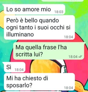 Oggi quindi vi dicevo era un giorno buono. Lui le ha chiesto di sposarlo, ma poi…”