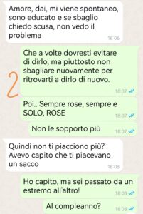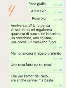 E all’inizio sorridevo, pensavo fosse tenero. Adesso mi chiedo se non sia solo tirchieria travestita da poesia. Perché io lo amo, ma non voglio una collezione di fiori secchi: voglio sorprese, gesti nuovi, qualcosa che racconti la nostra storia senza ripetersi come un disco rotto. Perché a forza di petali… restano solo spine.”