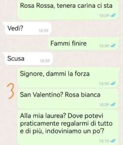 “A volte penso che se avessi raccolto tutte le rose che ho ricevuto in questi anni, oggi avrei un vivaio. E no, non sto scherzando. Ogni compleanno, ogni anniversario, ogni Natale, persino la mia laurea: sempre una rosa, solo una, di un colore diverso. Rosso, bianco, giallo, blu… ormai conosco la tavolozza meglio di un fiorista.