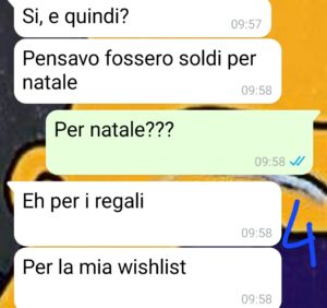 “Non avevo un piano preciso, ma avevo un’idea chiara, stavo facendo qualcosa per noi. Poi oggi mi manda la sua stessa “wish list” di Natale e non potete nemmeno immaginare quanta roba voleva prendersi, e li ho sorriso.